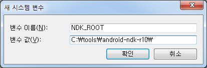 - NDK_ROOT 환경 변수를 추가하고, 압축 푼 Android NDK의 루트 경로(파일들이 존재하는 경로)를 그 값으로 입력한다.
