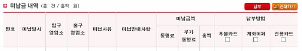 6. 미납금 내역이 표시되면서 아래와 같은 내용을 확인할 수 있으며 납부도 가능합니다.